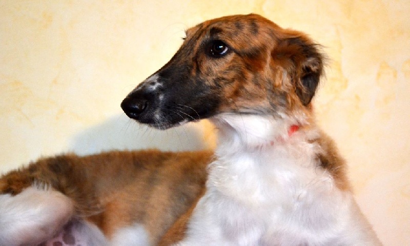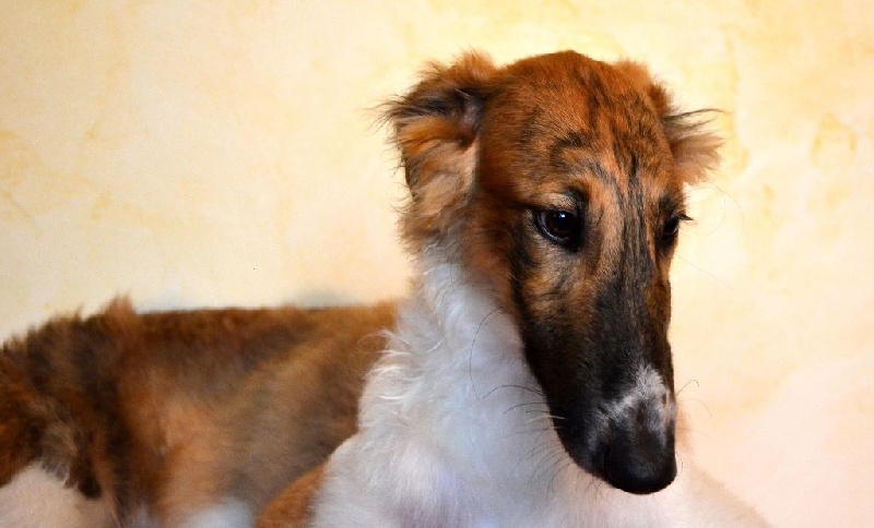 Troisième née. Manteau bringé à panachures blanches. 580g. A dix jours : 1240g. Très jolie femelle avec une tête magnifique. Beaucoup de chic. Très affectueuse, docile et propre. Excellent caractère.